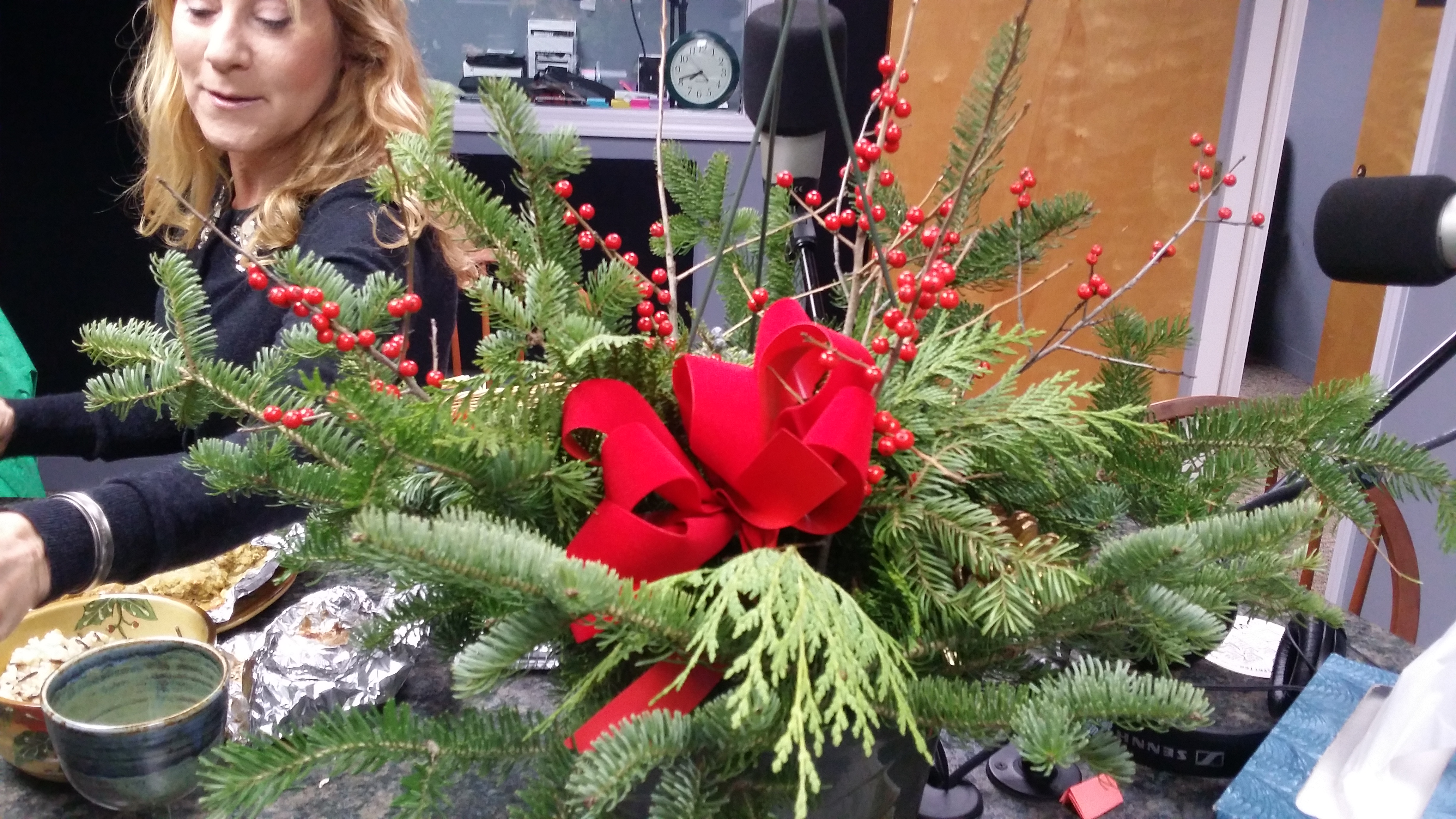 (Hour 2c) Kristian and SulaneWe talked to Sulane Blackford of Jacques Flower Shop and her son Kristian for The Garden Goddess this morning.  She talked to us about evergreens, lights and crockets.  She told us about the early days of the Christmas tree and enlightened us about the traditions.  Her son then told us about the origin of the star that hangs on the top of the tree.  Tune in to hear more, including information about the delicious meal that Sulane brought to us.