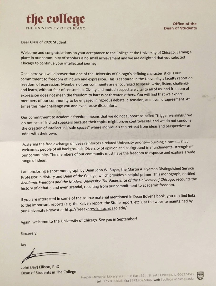 Rich spoke about the letter that the University of Chicago sent out to incoming freshmen. He explained what a “trigger warning” is and talked about support for an equity policy.