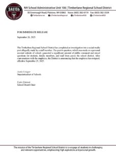 Late last week, Girard at Large obtained a social media post from the Timberlane Regional School District. In the post, Timberlane announced that, after an investigation into teacher Ed Tinney, who posted “I”m glad [Kirk’s] dead” on sicial media, it had met with Tinney and that he had resigned, effective September 25, 2025. The notice to the public was dated and posted on September 26. Timberlane’s investigation was concluded, with personnel desicions made, within two weeks of his post.
