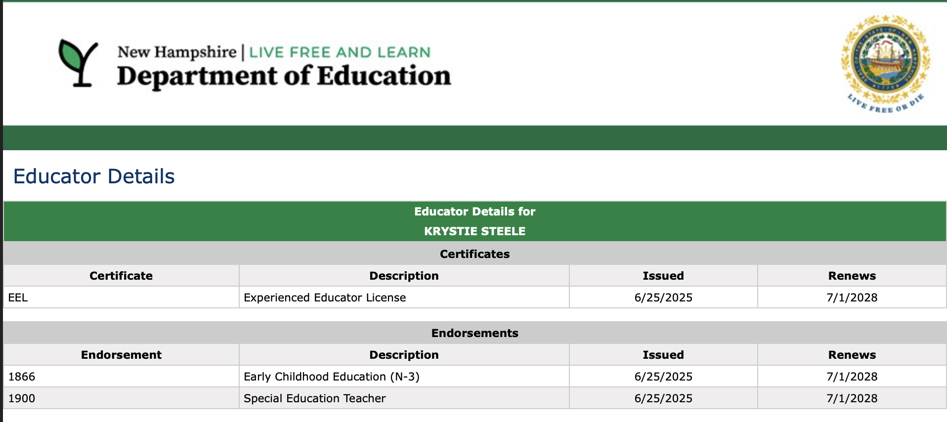 As noted, these wrongful enrollments are not without their consequences.  Girard at Large reviewed Smyth Road’s  cost per pupil as reported on the NH Department of Education’s Web site from the time Steele enrolled her son in kindergarten to the present.  (Note, these numbers do not include federal funding received by the school, including emergency COVID funds, nor do they include items the state excludes from the per pupil cost calculations, such as transportation and debt service.  Also, because the current fiscal year numbers won’t be available until after the fiscal year closes, we’ve used the 2024-2025 per pupil cost for the current school year.).  Using these figures, educating Steele’s children cost Manchester taxpayers at least $167,420.  We are unable to calculate the extra costs associated with educating Steele’s son, who we confirmed received Special Education services through an IEP.